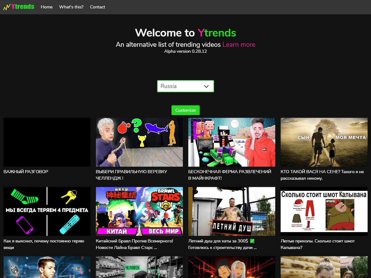 Cuando se trata de proyectos personales siempre intento hacer algo útil. Normalmente útil para mí pero también puede serle útil a otro. Creé este proyecto por que el algoritmo oficial de las tendencias de Youtube es un poco raro, me da la impresión que ponen lo que le interesa poner a Youtube.